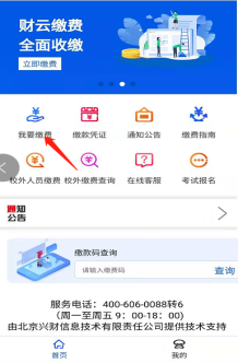 支付成功 登录成功后,点击“我要缴费”或点击“我的—我的缴费”。 |